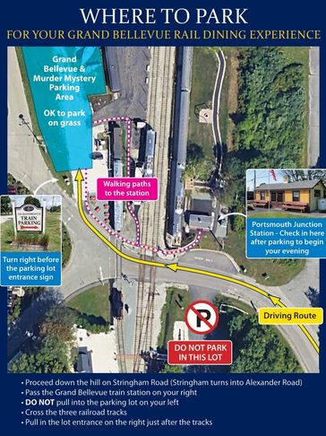 We offer Free Parking, however parking is limited and we ask all guest to park in the DESIGNATED Parking Area. The Grand Bellevue Train Parking area is Located across the tracks and just to the right. A Train parking Sign is present to guide guests.