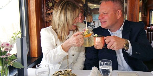 We'll take you back in time to celebrate an elegant, nostalgic dining affair of the Grand Streamliner era in our Aquidneck Spruce dining car, or solve an interactive Murder Mystery aboard the Atlantic Rose Theatre dining car.